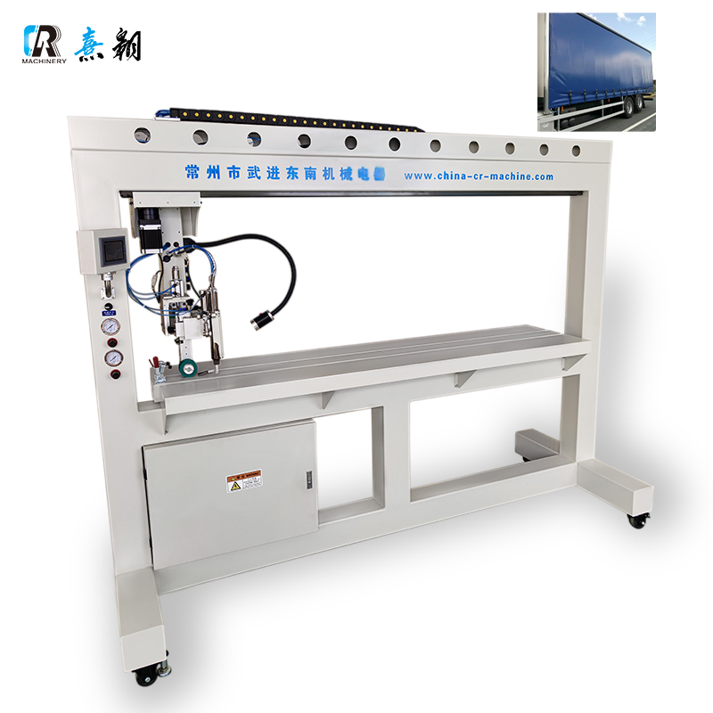 本机为高性能定制龙门架式热风焊接设备,专为直线焊缝焊接设计,适用于 PVC、PU、TPU、PE、HDPE 等热塑性夹网布的大幅面直线熔接与密封。设备通过移动热风枪嘴瞬间加热表层材料,随后由胶轮或铁轮施加压力实现熔接;冷却后焊缝平整、美观且强度高,常能达到或超过基材强度。该机以高速、定位精度和稳定的温控性能著称,能显著节省生产时间与人工成本,是遮阳篷、油布、大型帐篷和横幅等产品的理想解决方案。